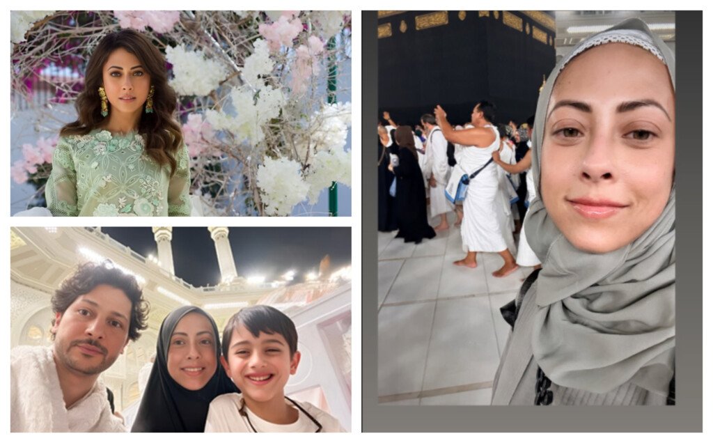 Popular Pakistani actress Ainy Jaffri recently fulfilled a beautiful spiritual journey by performing Umrah with her husband, Faris Rahman, and their young son Aydin Ibrahim. The family shared touching glimpses from their pilgrimage through stories and posts on Ainy’s Instagram, spreading peace and positivity among fans.