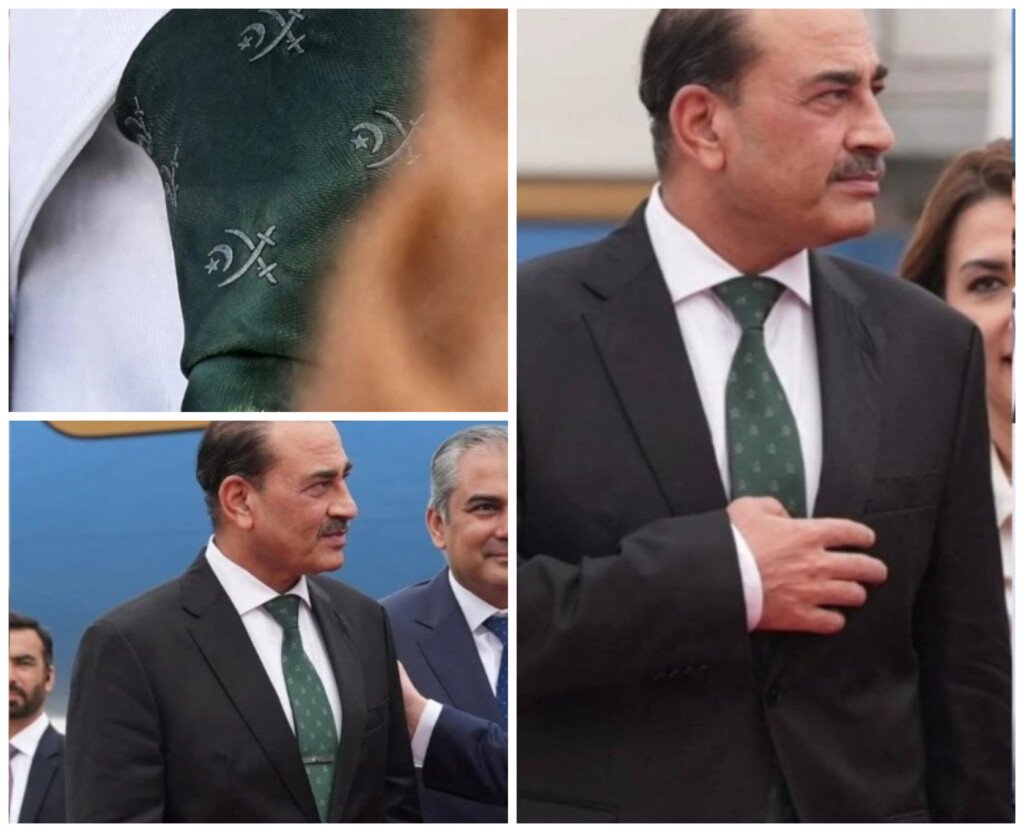 Sharp eyes among the public noticed something special about General Asim Munir’s appearance at a recent high-profile event, and it was all about his neckwear. The Chief of Army Staff was spotted wearing a dark green tie that, at first glance, looked like a stylish formal choice. But a closer look revealed something much more meaningful.