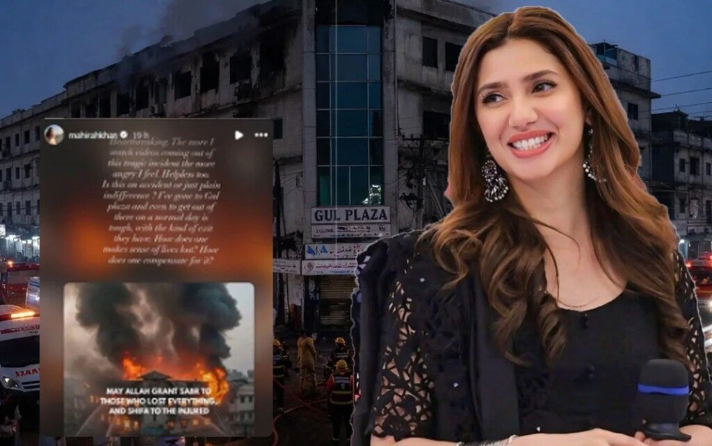 The tragic fire that broke out at Gul Plaza on M.A. Jinnah Road, Karachi, late on Saturday night has deeply affected people across the country. Among the many voices expressing grief and outrage is renowned Pakistani actress Mahira Khan, whose emotional reaction to the incident resonated strongly with the public. In response to the horrifying videos circulating on social media, Mahira said that watching the footage made her feel “angry and helpless,” reflecting the pain and frustration felt by countless Pakistanis.