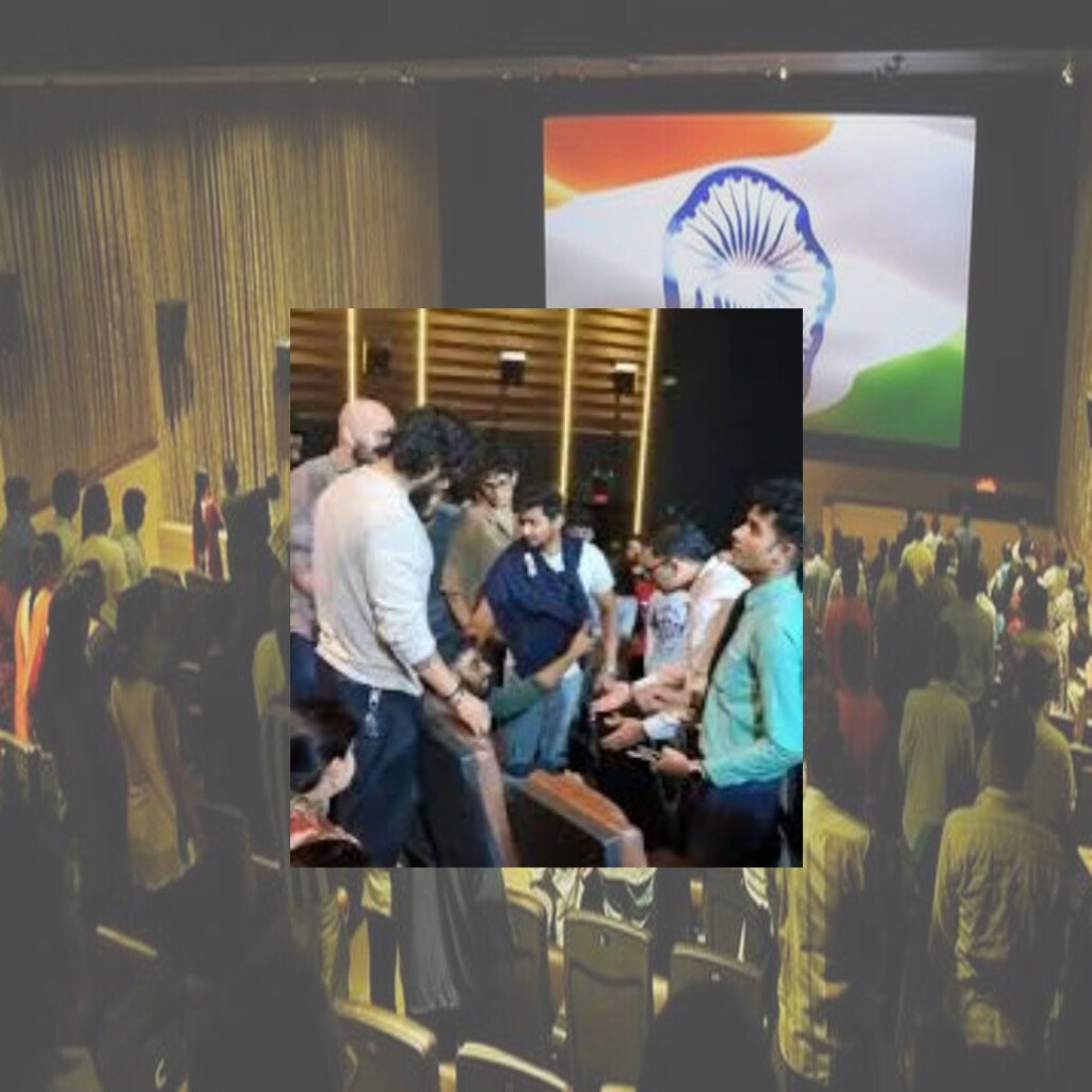 A video going around on social media shows a man being pushed out of a cinema hall because he did not stand when the Indian national anthem played before a film. The scene was shared on platforms like X, Reddit, and Instagram, and has started a heated debate online about respect for national symbols and individual rights.